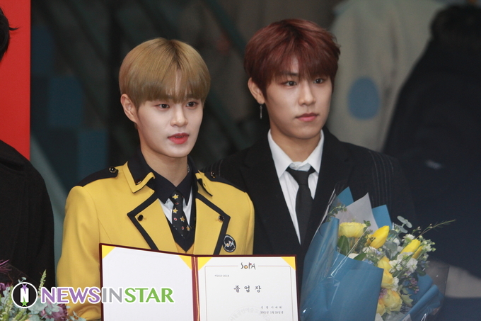 15일 오전 서울 구로구 서울공연예술고등학교에서 열린 2019학년도 졸업식에 박우진, 이대휘가 참석해 포토타임을 가졌다.