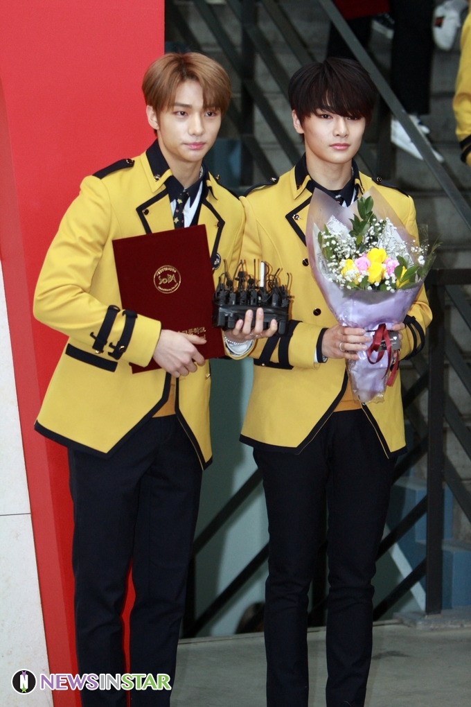 15일 오전 서울 구로구 서울공연예술고등학교에서 열린 2019학년도 졸업식에 스트레이키즈 현진, 아이엔이 참석해 포토타임을 가졌다.