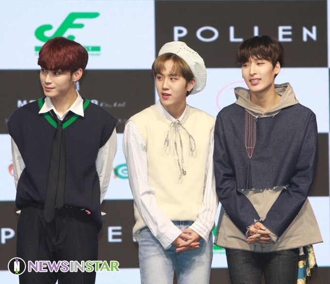 18일 오후, 서울시 중구 롯데피트인에서 그룹 세븐어클락(Seven O'clock)의 첫번째 디지털 싱글앨범 'Get Away' 발매 기념 쇼케이스가 열려 세븐틴 한겸, 이솔, 현이 참석해 포토타임을 갖고 있다.