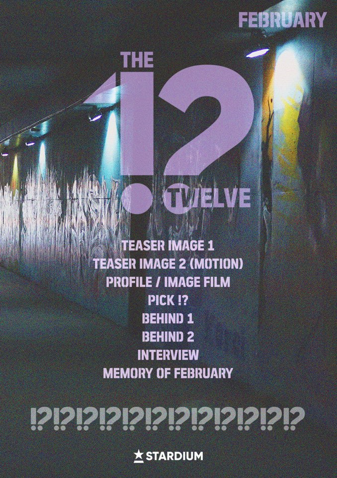 ‘더 투웰브(THE TWELVE)’프로젝트는 2019년 1월부터 12월까지, 매 월 한 명의 예비스타를 공개하는 프로젝트로 스타디움이 준비한 스타 시스템의 과정을 거쳐 2020년도에 ‘배우돌’ 그룹으로 정식 데뷔하게 될 예정이다.