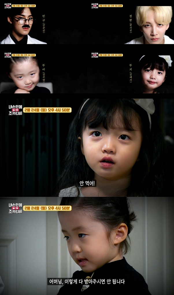 지난 주 일요일 첫 방송에서 김완선과 어썸하은, 하연수와 존&맥이 첫 만남을 통해 서로를 알아가는 시간을 가진 가운데, '조카티비' 제작진이 오늘(21일) 뚜아뚜찌와 세븐틴의 멤버 민규, 정한이 만나 합작한 패러디 영상을 공개했다. 이번 영상은 최근 종영한 드라마 'SKY 캐슬'을 패러디한 일명 '뚜카이캐슬'로, 세븐틴의 민규와 정한이 각각 배우 정준호와 염정아를, 뚜아뚜지의 수아와 수지가 각각 김서형과 김혜윤 역할로 등장해 웃음을 선사한다.