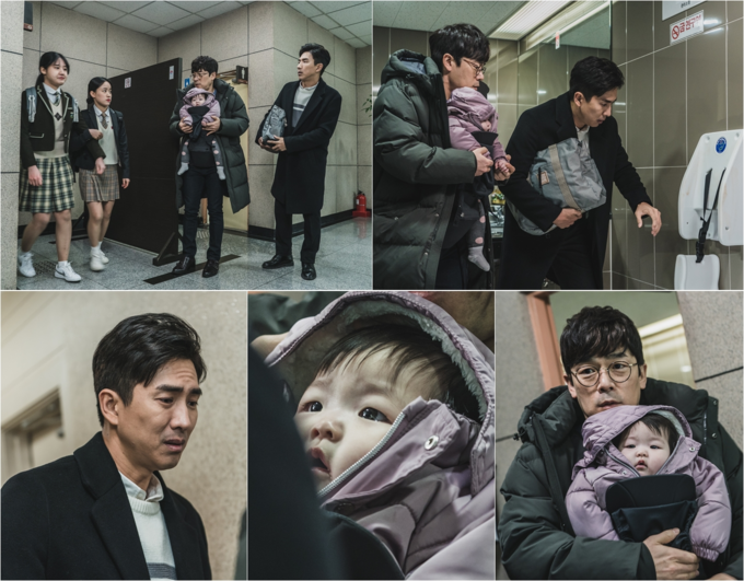 그런 가운데 공개된 사진 속에는 꿀벌이를 안고 여자화장실 앞에서 쩔쩔매는 승준의 모습이 담겨있어 궁금증을 유발한다. 꿀벌이 기저귀 가방을 든 채 발만 동동 구르는 혁규의 짠내 폭발 모습도 호기심을 더한다. 여고생들에게 불꽃 째림을 당하면서도 화장실 앞을 서성이는 두 사람. 아빠 승준의 품에 꼭 안긴 꿀벌이 역시 어딘가 불편한 듯 동공지진을 일으키고 있어 웃음을 자아낸다. 우여곡절 끝에 화장실 잠입에 성공한 승준과 혁규. 기저귀 거치대 앞에서 당황스러움을 감추지 못하는 두 사람의 표정에서 초보 육아대디의 험난한 육아활투극에 호기심을 증폭한다.