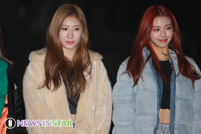 22일 오전 서울시 영등포구 여의도 KBS 신관 공개홀에서 열린 '뮤직뱅크' 리허설에 참석하기 위해 있지가 출근길 포즈를 취하고 있다.