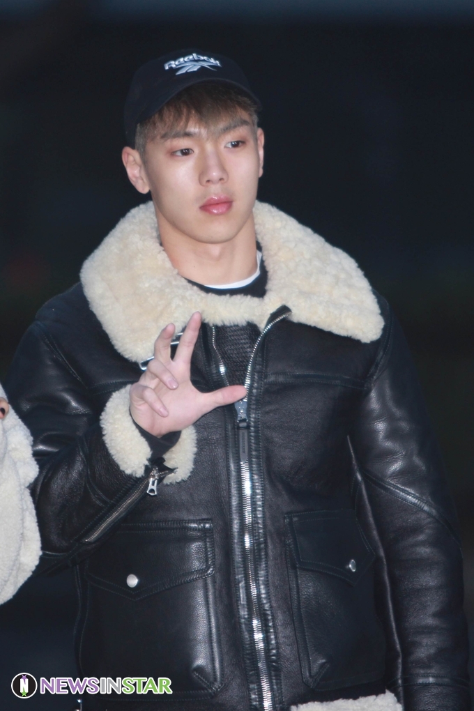 22일 오전 서울시 영등포구 여의도 KBS 신관 공개홀에서 열린 '뮤직뱅크' 리허설에 참석하기 위해 몬스타엑스 셔누가 출근길 포즈를 취하고 있다.