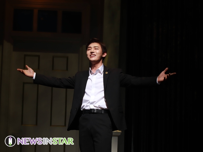 26일 오후 서울시 용산구 한남동 블루스퀘어에서 대한민국 대표 창작 뮤지컬 '그날들'의 프레스콜이 열려 윤지성(강무영)이 무대를 선보이고 있다.