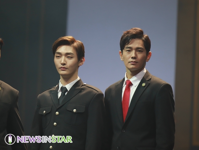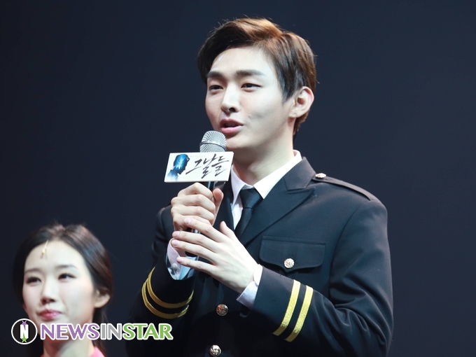 26일 오후 서울시 용산구 한남동 블루스퀘어에서 대한민국 대표 창작 뮤지컬 '그날들'의 프레스콜이 열려 윤지성(강무영)이 인사말을 하고 있다.