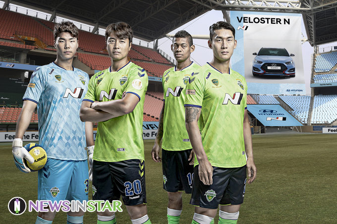 우선 이번 시즌 선수단 유니폼에 고성능 N과 함께 축구단이 가진 역동성과 강인함을 표현하기 위해 전북현대모터스FC의 구단 원색인 형광을 기본 바탕으로 전면에 N 스폰서 로고 및 포인트 패턴을 도입했다.