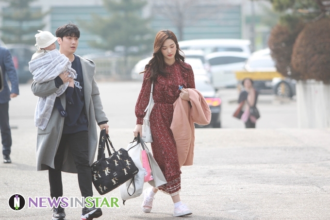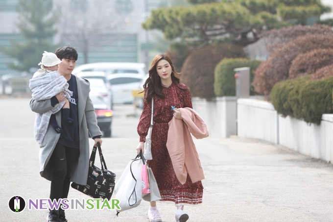 율희, 최민환이 해투 녹화를 위해 출근하고 있다.