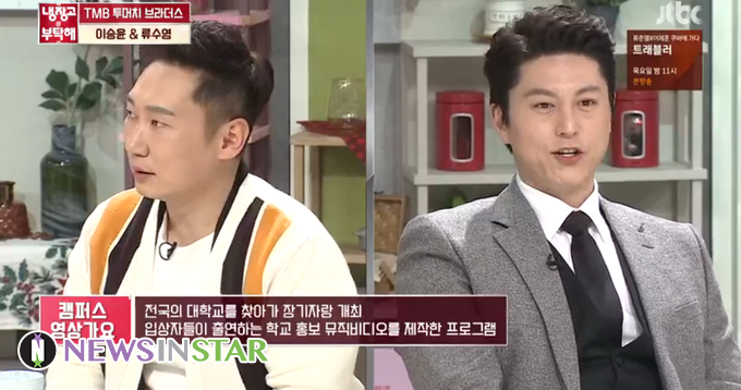 4일 방송된 JTBC <냉장고를 부탁해>에는 ‘자연인’ 이승윤과 배우 류수영이 출연자로 등장해 예상 밖 ‘절친 특집’이 성사됐다. 대학교 선후배 사이인 두 사람은 21년간 우정을 이어오며 대학 시절 익혔던 차력쇼를 선보이기도 했다.