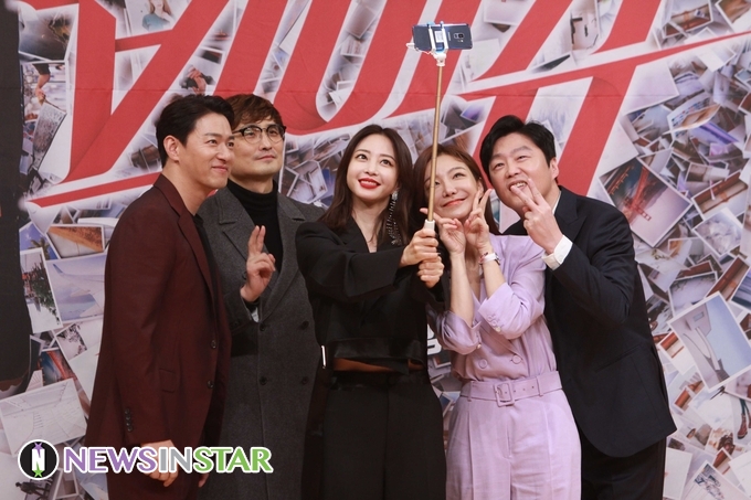 6일 오후 서울시 양천구 목동 SBS에서 SBS 새 수목드라마 '빅이슈' 제작발표회가 열려 배우 주진모, 한예슬, 신소율, 김희원, 이동훈PD가 참석해 포즈를 취하고 있다.