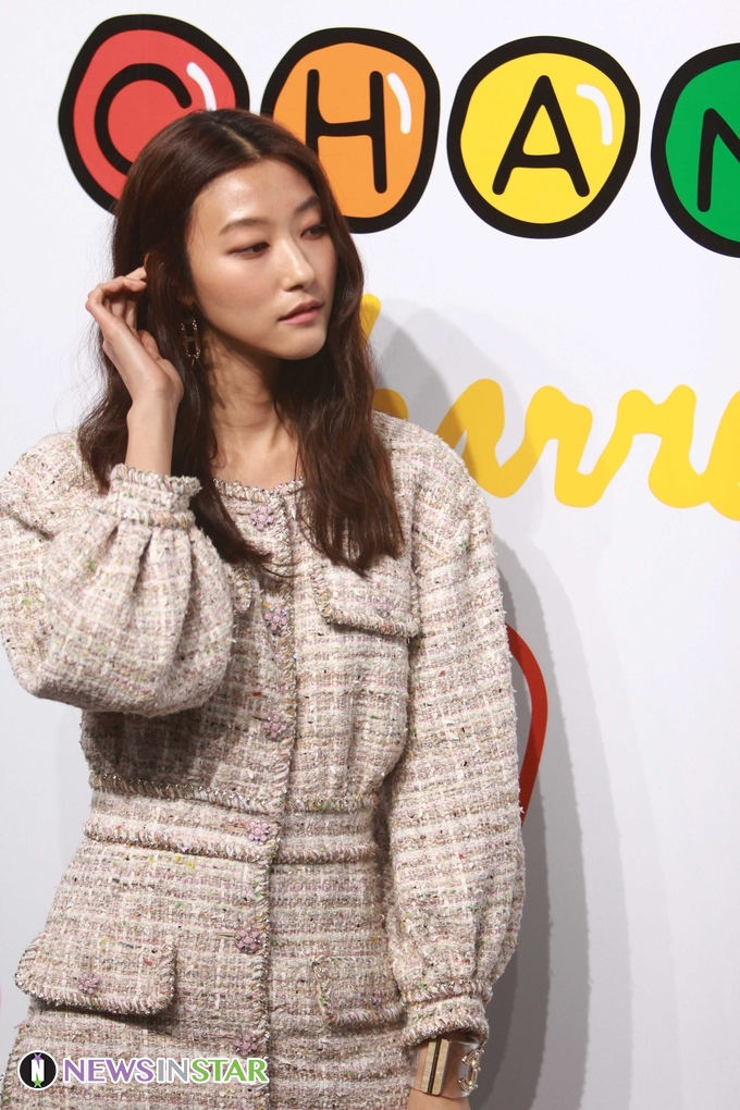 27일 오후 서울시 성동구 성수동 대림창고에서 '샤넬(CHANEL)'의 서울 플래그쉽 오픈 및 퍼넬 캡슐 컬렉션 런칭 행사가 열려 모델 박지혜가 참석해 포토월에서 포즈를 취하고 있다.