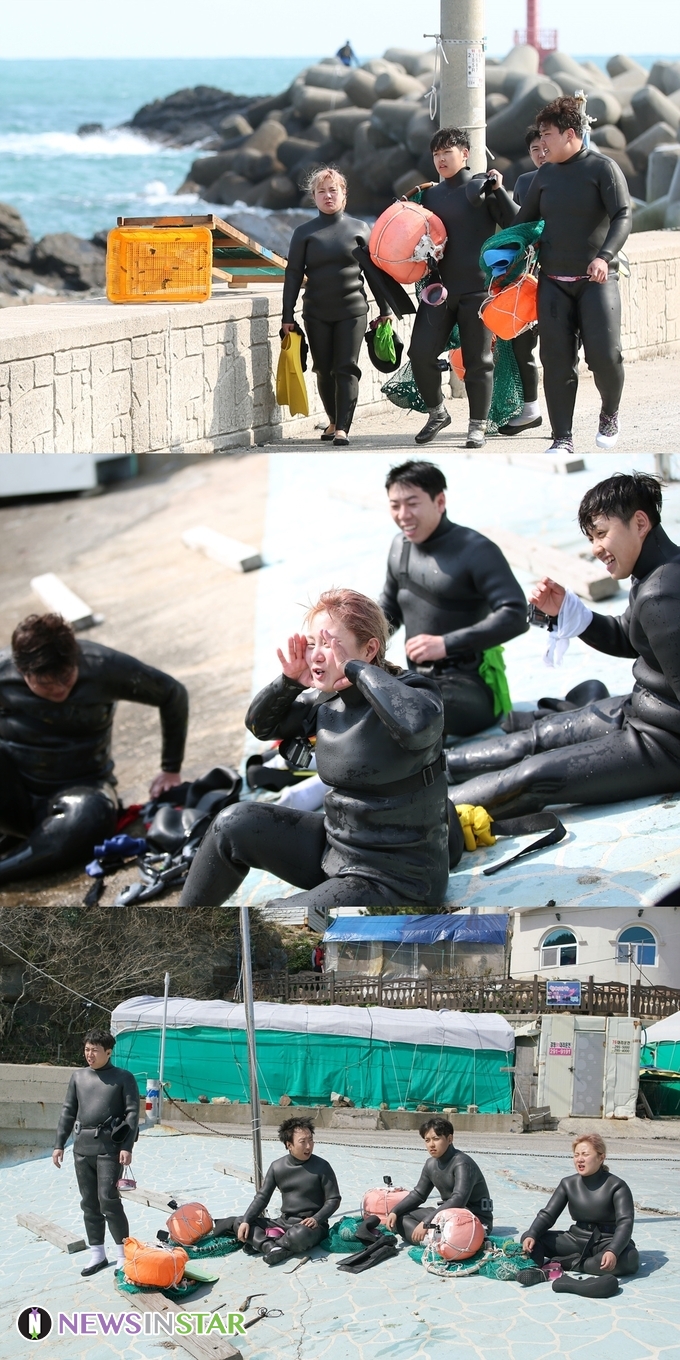 tvN '풀 뜯어먹는 소리3'가 내일(1일, 월) 첫 방송에 앞서 공개한 스틸컷에는 출연진이 전신 바디수트로 중무장, 해녀로 완벽 변신해 눈길을 사로잡는다.