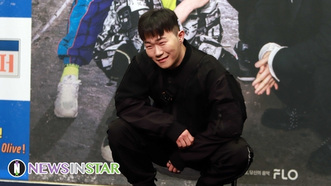1일 오전 서울시 마포구 상암동 스탠포드호텔에서 올리브 '노포래퍼' 기자 간담회가 열려 행주가 포토월에서 포즈를 취하고 있다.