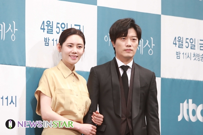 4일 오후 서울시 강남구 논현동 임피리얼 팰리스 서울에서 JTBC 새 금토드라마 '아름다운 세상' 제작발표회가 열렸다. 이날 배우 박희순X추자현이 참석해 포토타임을 갖고 있다.
