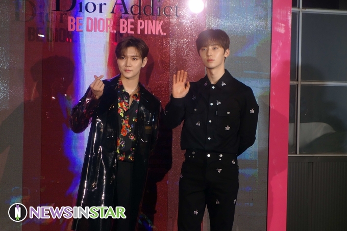 4일 오후 서울시 성동구 성수동 레이어57에서 '크리스챤 디올 뷰티 코리아'가 'New 패션 립스틱 - NEW 디올 어딕트 스텔라 샤인'의 한국 출시를 기념하는 론칭 행사를 개최했다. 이날 뉴이스트 렌, 민현이 참석해 포토타임을 갖고 있다.
