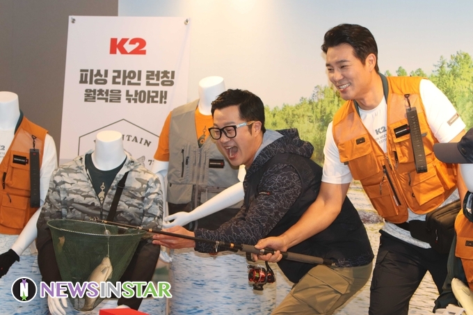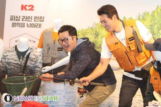 9일 오전 서울시 중구 태평로 더 플라자 호텔에서 K2 전문 낚시 웨어인 '피싱라인(FISHING LINE)' 론칭 행사가 열려 낚시 형제 이태곤과 지상렬이 참석해 포토타임을 갖고 있다.