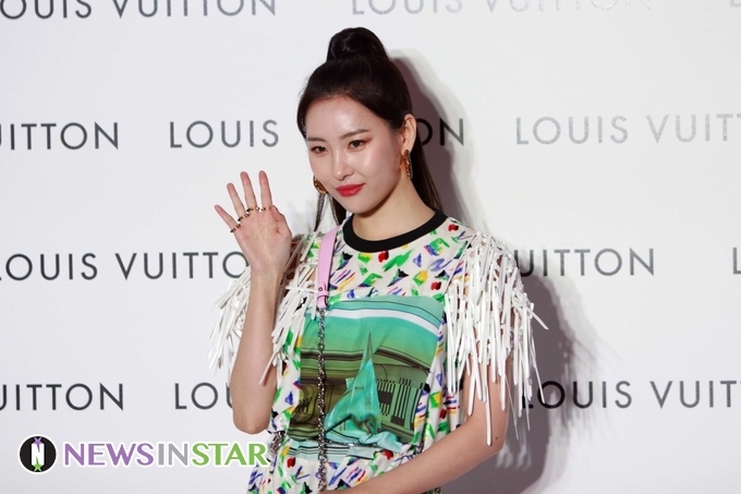 10일 오후 서울시 용산구 한남동 현대카드 바이닐앤플라스틱에서 '루이 비통'이 전 세계 최초 한국에서 '트위스트 백' 팝업 스토어오픈 행사를 가져 선미가 참석해 포토월에서 포즈를 취하고 있다.