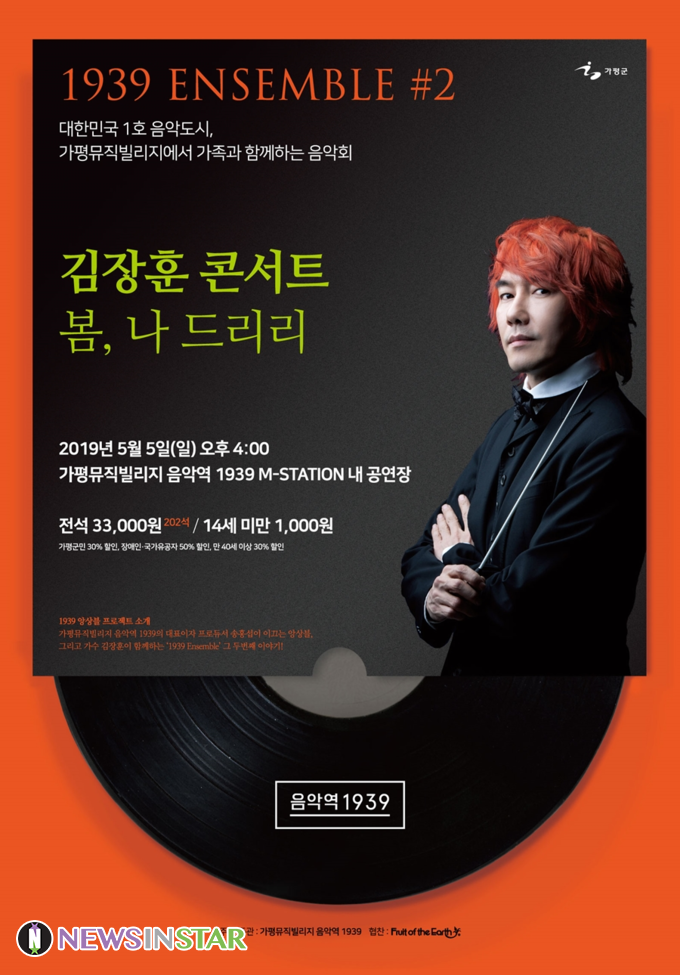 가평뮤직빌리지 '음악역 1939'가 '1939 Ensemble 김장훈 콘서트-봄, 나 드리리'를 개최한다.