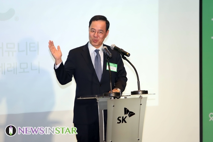 22일 오후 서울시 중구 을지로 SK텔레콤 본사 '행복 커뮤니티 런칭 세리모니'행사가 열려 과학기술정보통신부 민원기 제2차관 참석해 인사말을 하고 있다.