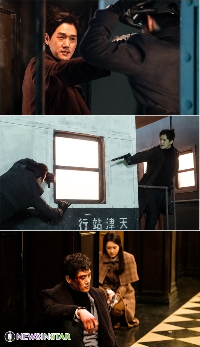 이와 함께 유지태의 기차 총격신이 예고돼 기대감을 폭발시킨다. 유지태는 비장한 눈빛으로 총을 겨누고 있는 모습. 단호한 그의 표정에서 범접할 수 없는 카리스마가 뿜어져 나와 시선을 강탈한다. 특히 유지태는 난간에 기대어 있는 위태로운 상황에서도 목표물을 향한 뜨거운 집념을 드러내고 있어 손에 땀을 쥐게 만든다. 이에 유지태가 달리는 기차에서 총격전을 벌이고 있는 이유는 무엇일지, 오늘(11일) 밤 방송될 5-8회에 기대감이 수직 상승한다.