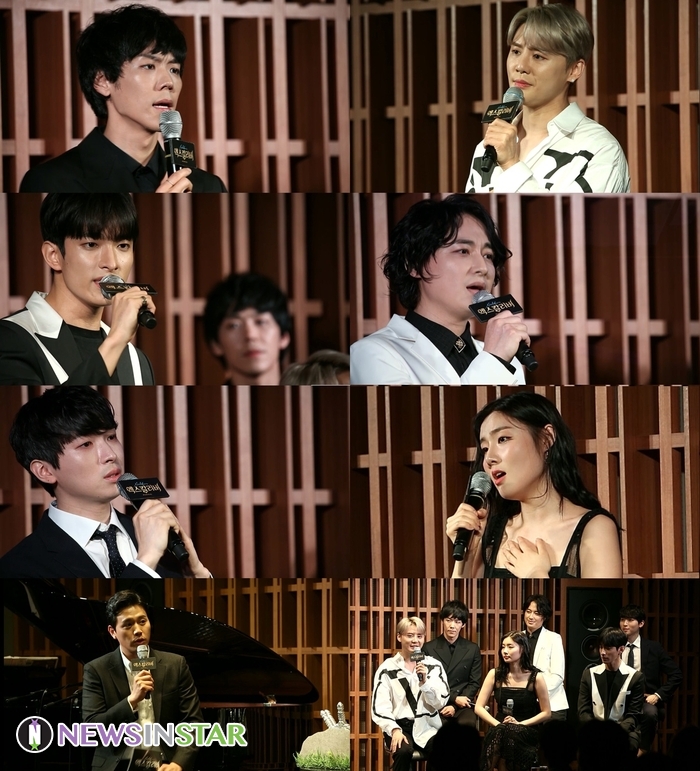 김준수는 아더가 소중한 사람을 그리워하는 넘버 ‘심장의 침묵’을 불러 몰입도를 높였다. 서정적인 멜로디에 특유의 미성이 더해졌고, 고음까지 흔들림 없이 소화해내 현장에서는 뜨거운 환호가 쏟아졌다. 첫 뮤지컬 도전으로 많은 이들의 궁금증을 자아낸 도겸은 극중 아더와 멀린이 대립하는 내용을 담은 넘버 ‘난 나의 것’을 선보였다. 그는 카리스마 가득한 눈빛과 안정감 있는 노래실력으로 막내 아더의 반전미를 드러냈다.