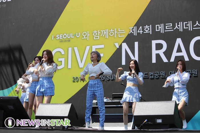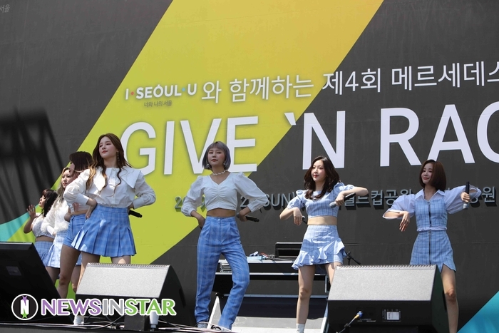 26일 오전 서울시 영등포구 여의도동 여의도공원에서 제4회 메르세데스-벤츠 '기브앤레이스'가 열려 걸그룹 모모랜드(혜빈, 연우, 제인, 나윤, 주이, 아인, 낸시, 태하, 데이)가 화려한 무대를 선보이고 있다.