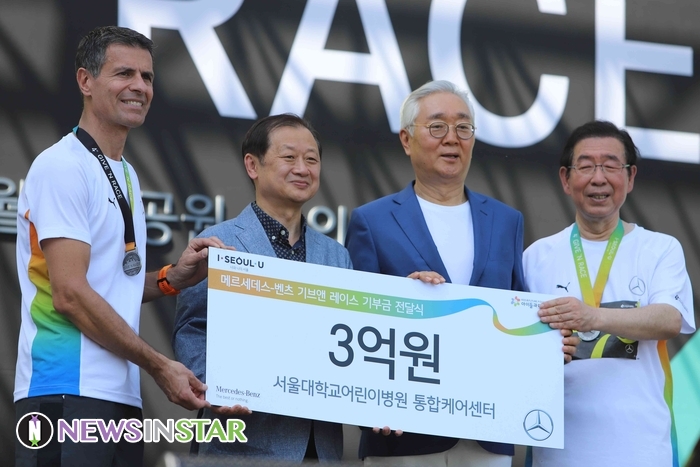 26일 오전 서울시 영등포구 여의도동 여의도공원에서 제4회 메르세데스-벤츠 '기브앤레이스'가 열려 디미트리스 살라키스 메르세데스-벤츠 사회공헌위원회 의장, 박원순 서울특별시장, 이훈규 아이들과미래재단 이사장이 참석해 기념사와 기부금 전달식 행사가  열렸다.