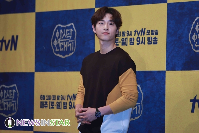 28일 오후 서울시 강남구 논현동 임피리얼팰리스호텔에서 tvN 새 토일드라마 ‘아스달 연대기’ 제작발표회가 열려 배우 송중기가 참석해 포즈를 취하고 있다.