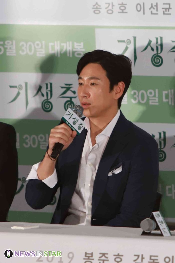 28일 서울시 용산구 CGV 용산아이파크몰에서 영화 ‘기생충’ 언론시사회가 열려 배우 이선균이 참석해 취재진의 질문에 답변하고 있다.