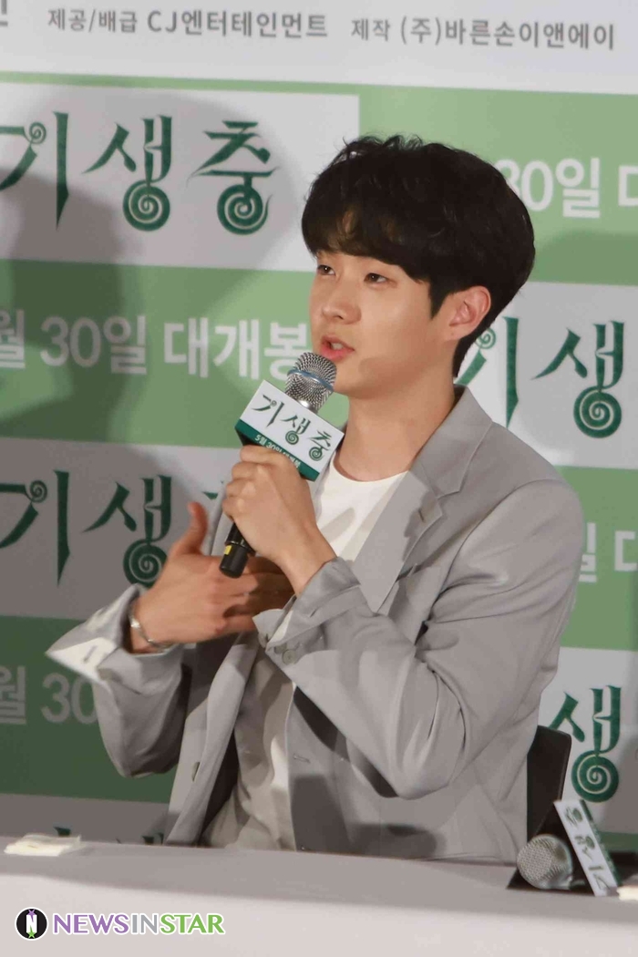 28일 서울시 용산구 CGV 용산아이파크몰에서 영화 ‘기생충’ 언론시사회가 열려 배우 최우식이 참석해 취재진의 질문에 답변하고 있다.