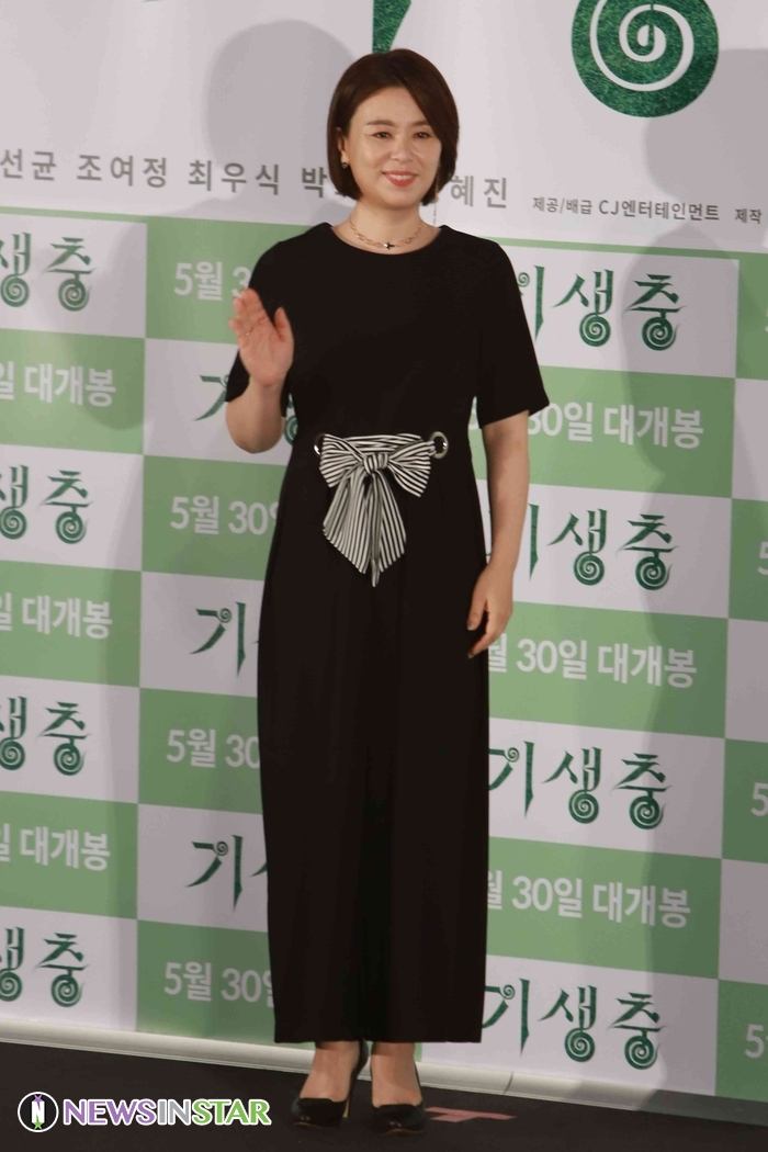 28일 서울시 용산구 CGV 용산아이파크몰에서 영화 ‘기생충’ 언론시사회가 열려 배우 장혜진이 참석해 포토타임에 포즈를 취하고 있다.