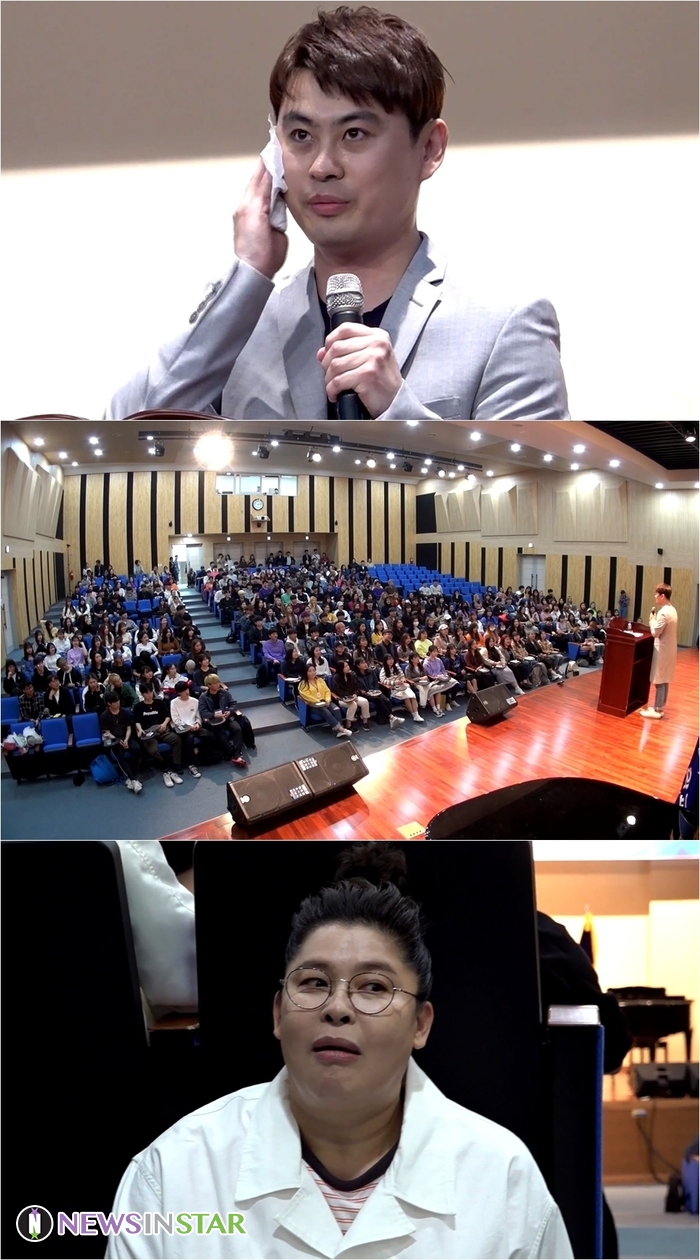 이영자 매니저가 마침내 마이크를 잡는다. 이영자의 정성스러운 케어를 받으며 강연장에 도착한 매니저는 예상보다 훨씬 많은 인원에 한껏 긴장했다고. 긴장도 잠시 매니저는 학생들의 뜨거운 박수와 함성을 받으며 강연장에 입성, 이영자 없이 홀로 무대 위에 올라 마이크를 잡고 있어 이목을 집중시킨다.