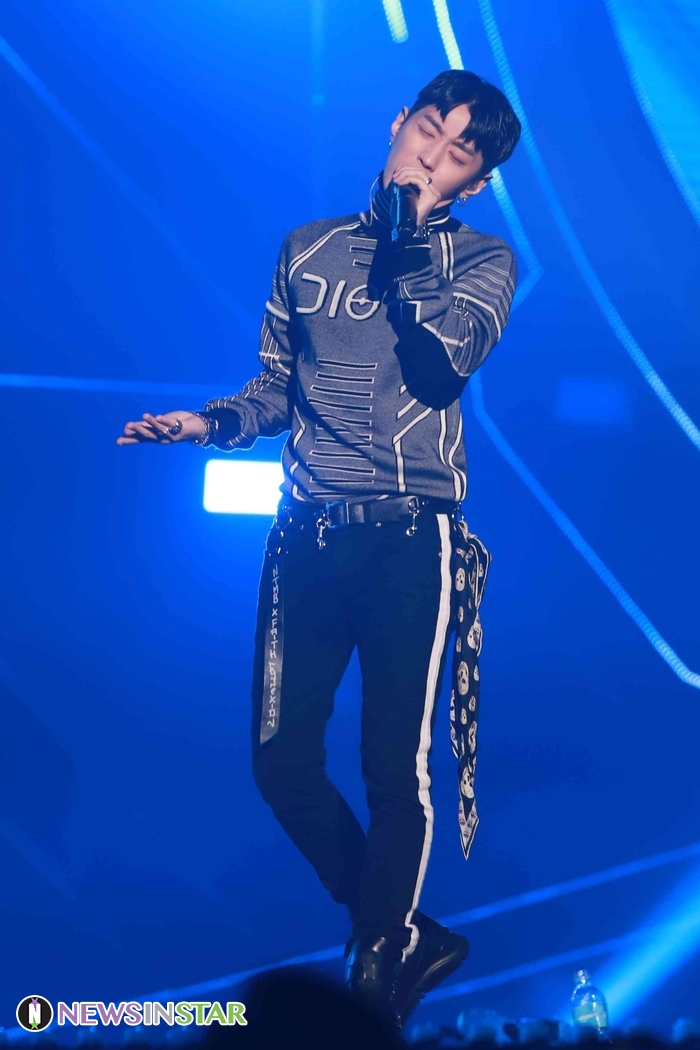 1일 오후 서울시 송파구 방이동 올림픽공원 핸드볼경기장에서 국내 최고 힙합 뮤지션들의 라이브콘서트 '지니뮤직 페스티벌 2019'이 열려 뮤지션 그레이가 참석해 열정적인 무대를 선보이고 있다.