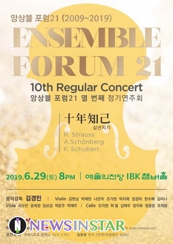 2019년 창단 10주년을 맞은 앙상블 포럼21은 이번 연주회에서 그동안 얻어진 고양된 앙상블의 세계로 관객들을 이끌 예정이며 제2비엔나악파의 작품으로 초심을 다지는 연주 작품으로 구성하였다.