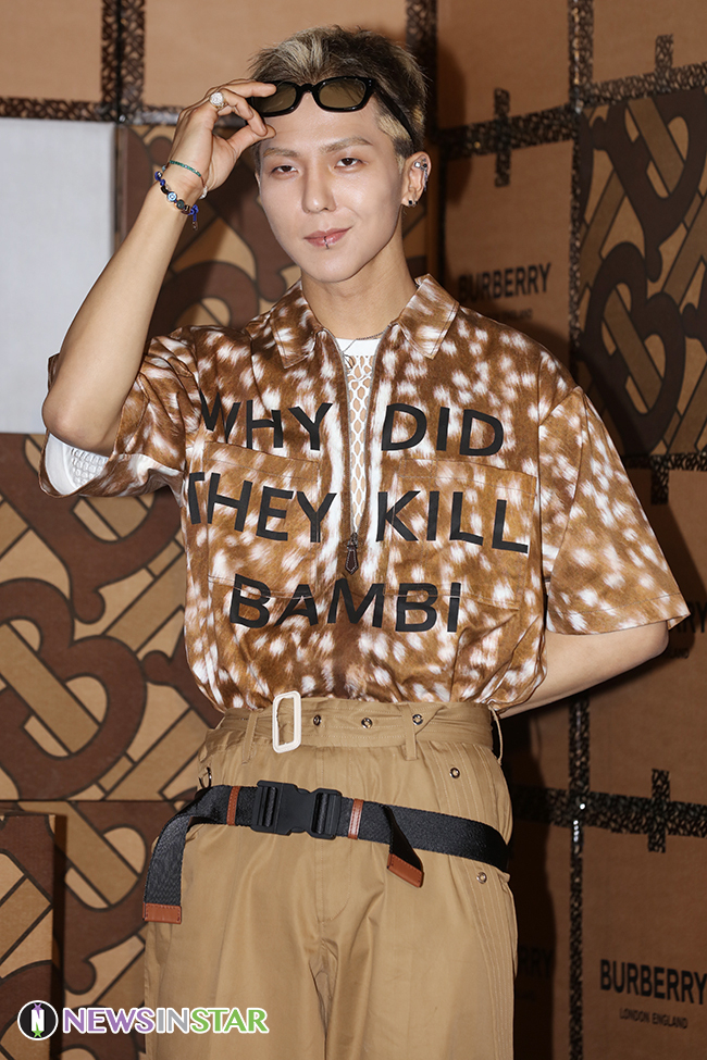 그룹 위너의 송민호가 5일 오후 서울 성동구 레이어57에서 열린 토마스 버버리 모노그램컬렉션 론칭 기념 파티에 참석해 포즈를 취하고 있다.