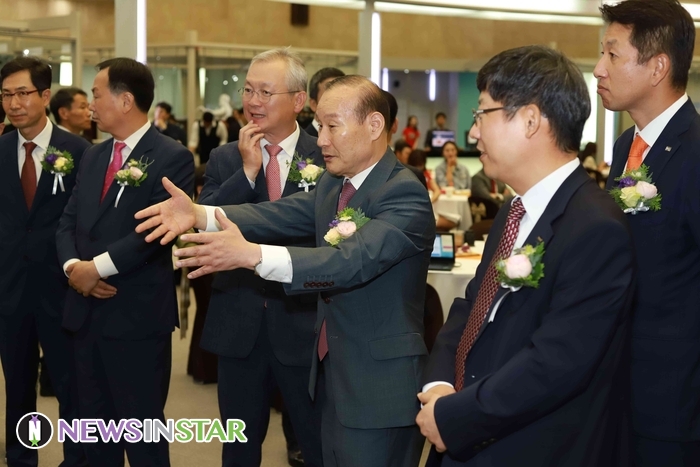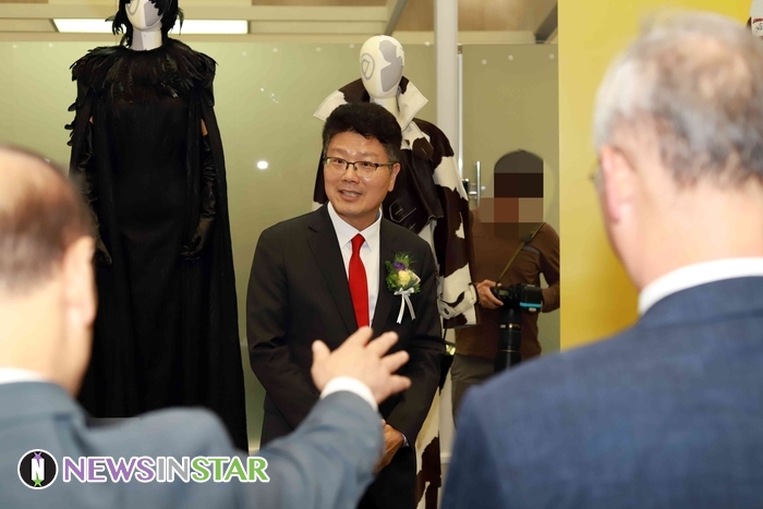6월 10일 오전 서울시 영등포구 여의도 한국거래소에서 프랑스 골프웨어 '까스텔바쟉'의 코스닥 상장 기념식이 열려 패션그룹 형지의 최병오 회장과 까스텔바쟉 백배순 대표가 행사에 참석해 제품에 대해 설명하고 있다.