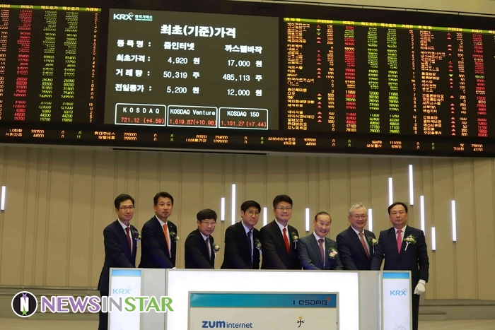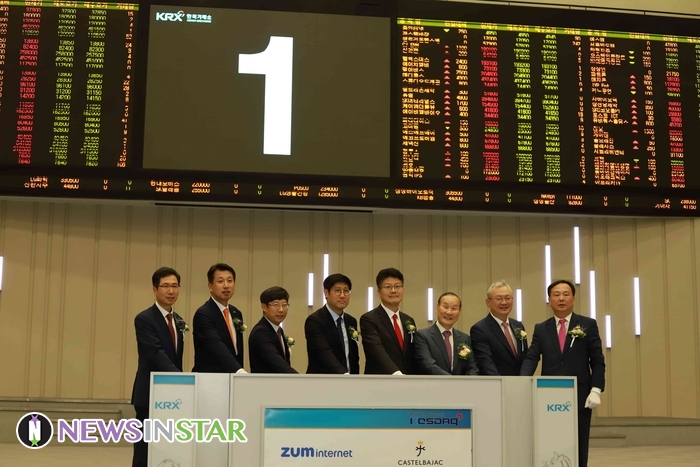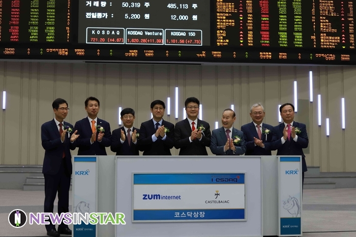 6월 10일 오전 서울시 영등포구 여의도 한국거래소에서 프랑스 골프웨어 '까스텔바쟉'의 코스닥 상장 기념식이 열려 패션그룹 형지의 최병오 회장과 까스텔바쟉 백배순 대표가 코스닥 상장 기념행사에 참석했다.