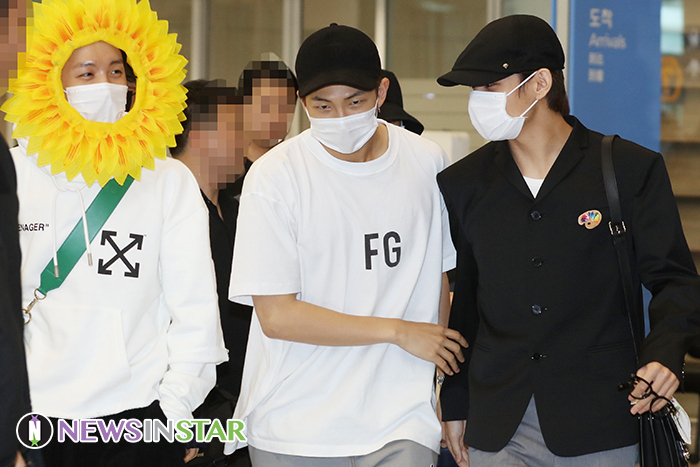 그룹 방탄소년단(BTS) 제이홉, RM, 뷔10일 오후 프랑스 파리에서의 월드 투어 공연을 마치고 인천국제공항을 통해 입국하고 있다.