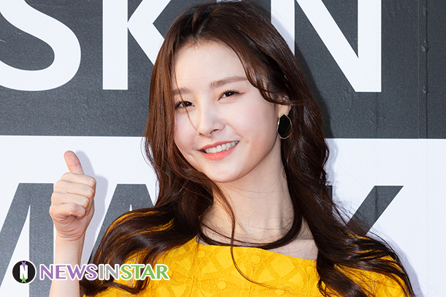가수 우희가 12일 오후 서울 영등포구 서울마리나에서 열린 '퓨리스킨 LED 마스크' 론칭 기념 행사에 참석해 포즈를 취하고 있다.