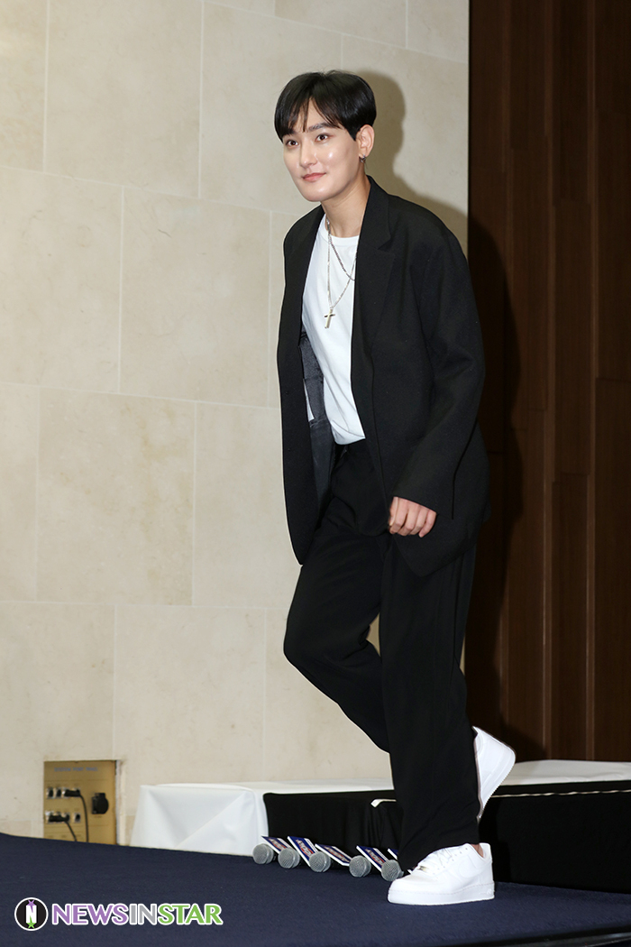 가수 강타가14일 오전 서울 마포구 스탠포드호텔에서 열린 tvN 예능 '슈퍼히어러' 제작발표회에서 포즈를 취하고 있다.