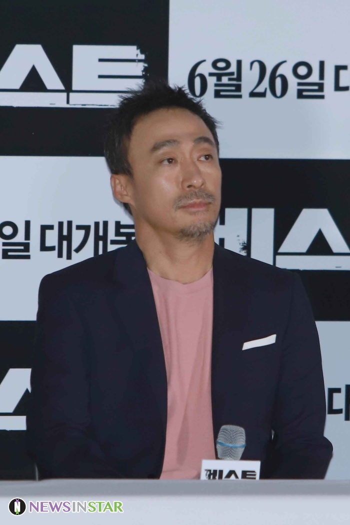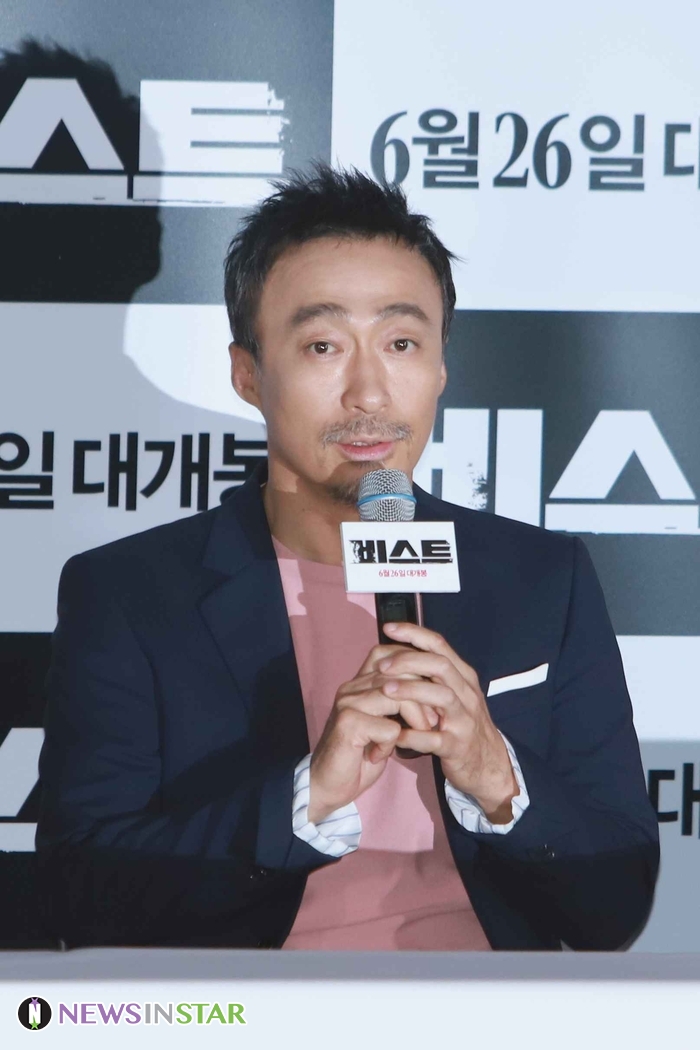 18일 오후 서울시 용산구 CGV 용산아이파크몰에서 영화 '비스트'의 언론시사회가 열려 시사회 종료 후 배우 이성민, 유재명, 전혜진, 최다니엘과 이정호 감독이 참석해 기자 간담회를 갖고 있다. 배우 이성민이 기자의 질문에 답변을 하고 있다.