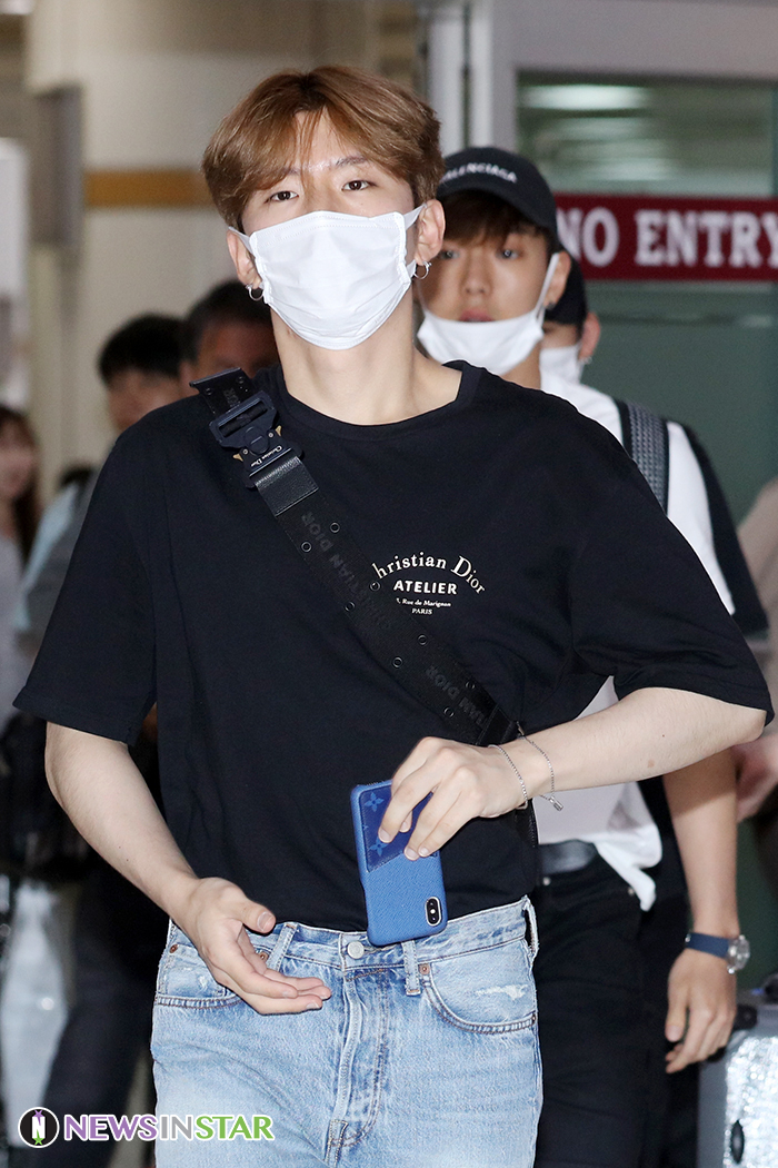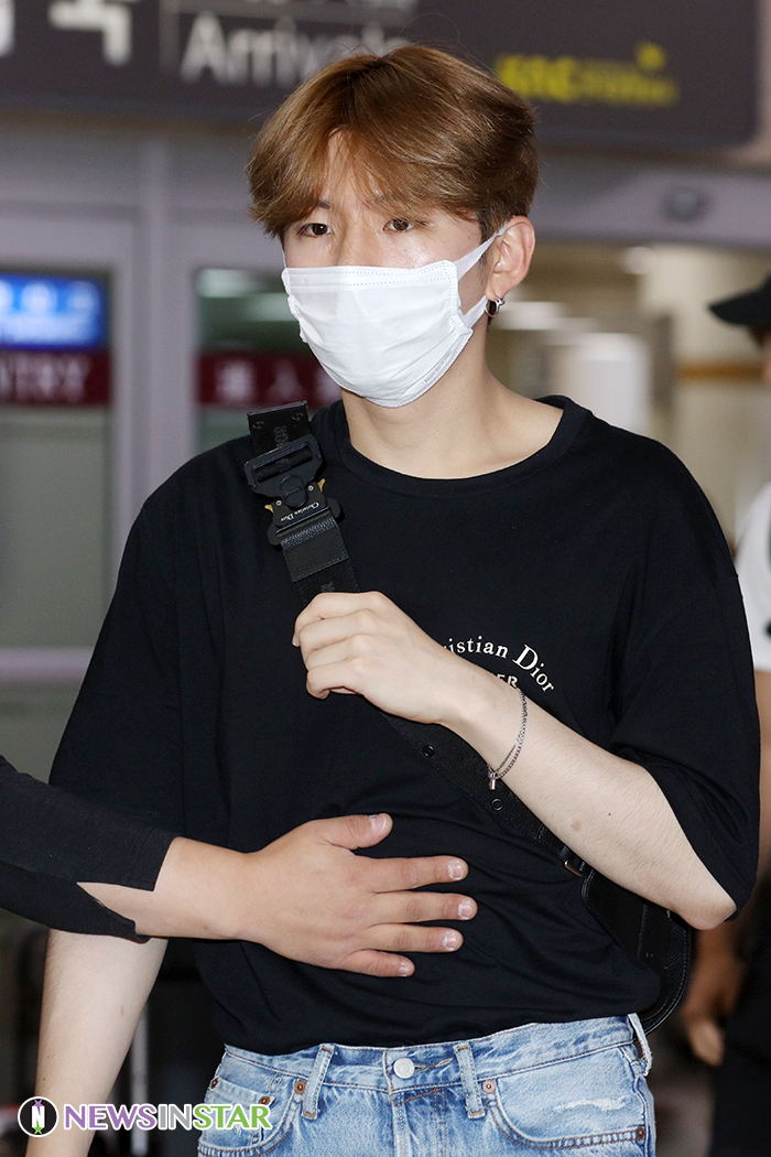 그룹 몬스타엑스 기현이 20일 오후 해외 일정을 마치고 김포국제공항을 통해 입국하고 있다.