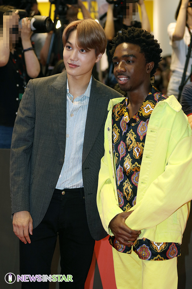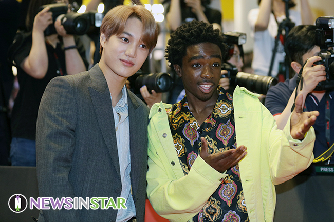 엑소 카이, 배우 케일럽 맥러플린이 20일 오후 서울 영등포구 타임스퀘어에서 열린 넷플릭스 오리지널 시리즈 '기묘한 이야기3' 레드카펫 행사에 참석했다.