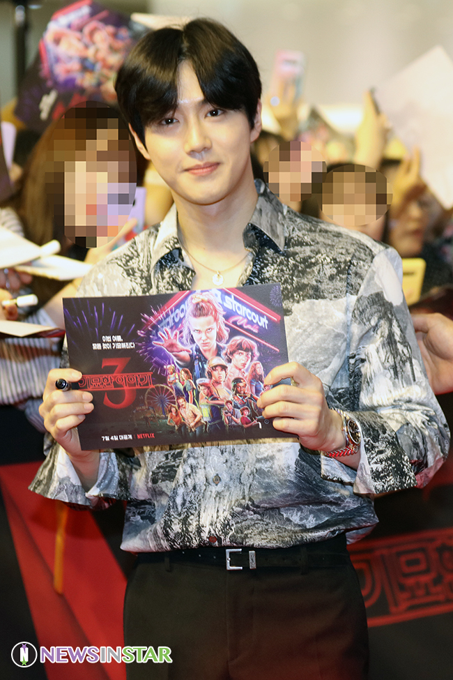 엑소 수호가 20일 오후 서울 영등포구 타임스퀘어에서 열린 넷플릭스 오리지널 시리즈 '기묘한 이야기3' 레드카펫 행사에 참석했다.