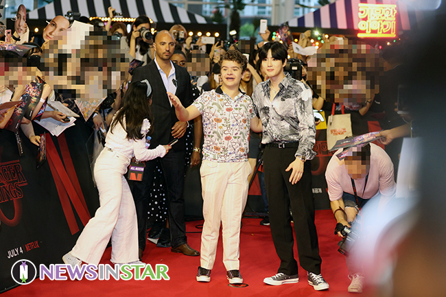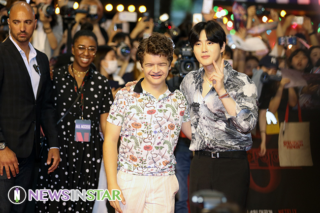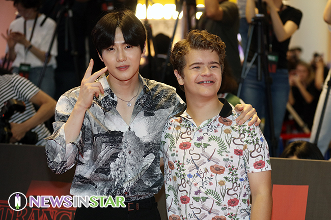 엑소 수호, 배우 게이튼 마타라조가 20일 오후 서울 영등포구 타임스퀘어에서 열린 넷플릭스 오리지널 시리즈 '기묘한 이야기3' 레드카펫 행사에 참석했다.