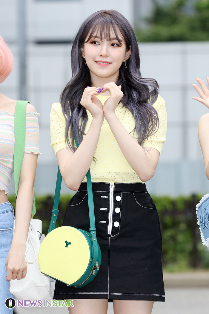 그룹 프로미스나인 백지헌이 21일 오전 서울 영등포구 KBS 신관에서 진행되는 KBS 2TV '뮤직뱅크'리허설에 참석하기 앞서 포즈를 취하고 있다.
