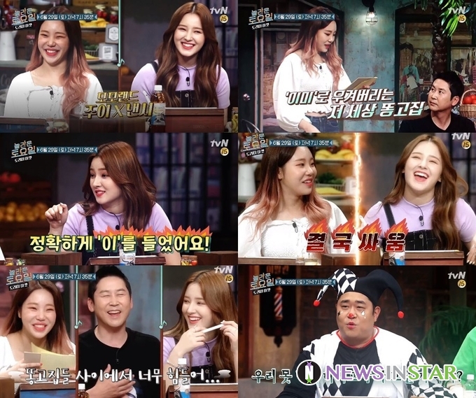이날 주이와 낸시가 스튜디오에 등장하자 MC 붐은 “여러분 큰일 났다. 오늘 ‘똥고집’과 ‘팔랑귀’가 동시에 나온다”고 이야기해 궁금증을 자아냈다. 주이는 “제가 똥고집이다. 그냥 막 우긴다”고 말했고, 낸시는 “청력이 안 좋아서 사람 말을 잘 못 알아듣는다. 거기에 심한 팔랑귀”라고 덧붙여 눈길을 끌었다.