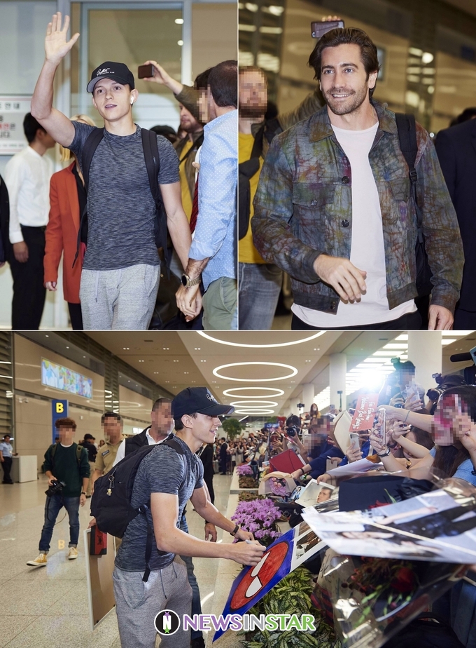 오늘 오전 4시 40분경 공항에 도착한 톰 홀랜드와 제이크 질렌할을 환영하기 위해 이른 시간임에도 불구하고 약 200여 명의 국내 팬들과 취재진들이 모여 공항은 폭발적인 환호와 뜨거운 취재 열기로 가득했다. 특히, 3년 연속 한국을 방문한 톰 홀랜드는 수많은 팬들에게 일일이 사인을 해주며 아낌없는 팬 서비스를 선보여 환영의 열기를 더했다는 후문. 이들은 6월 30일(일) 오후 2시 30분 DDP(동대문디자인플라자)에서 진행되는 ‘웰컴 스파이더맨 팬페스트’ 행사와 7월 1일(월) 오전 11시 포시즌스 호텔에서 진행되는 내한 기자간담회 및 각종 인터뷰 등을 통해 내한 행보를 이어갈 예정이다.