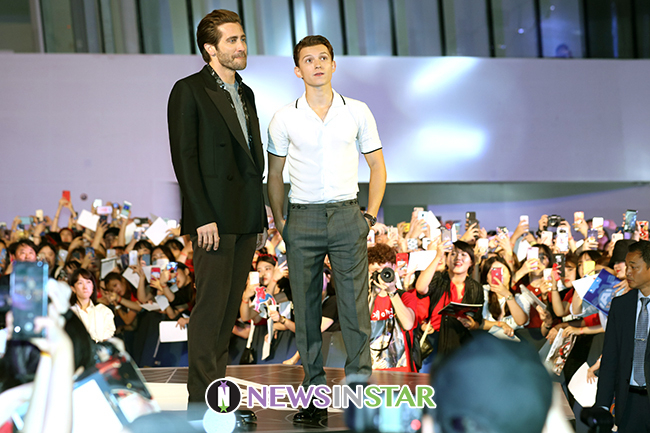 [뉴스인스타=서보형 기자] 배우 제이크 질렌할, 톰홀랜드이 30일 오후 서울 중구 동대문 디자인 플라자(DDP)에서 열린 영화 '스파이더맨:파 프롬 홈' 팬페스트에 참석했다.