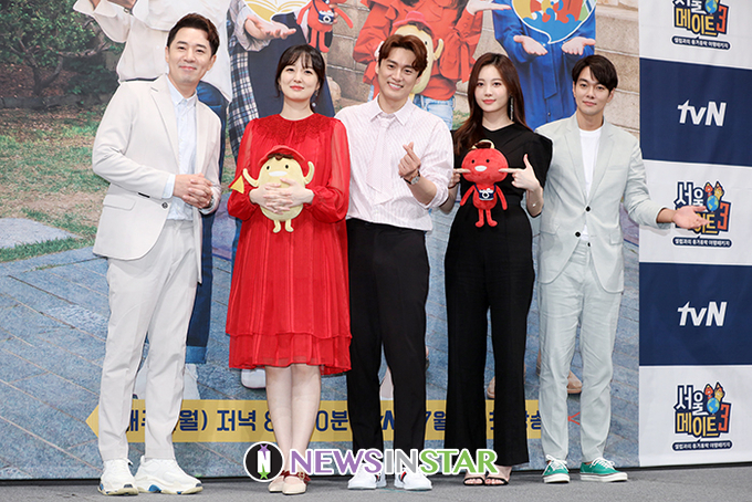 출연진이 1일 오전 서울 강남구 임피리얼패리스 서울에서 열린 tvnN 예능 '서울메이트3' 제작발표회에서 포즈를 취하고 있다.